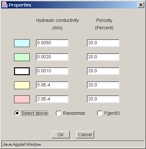 third option { Fgen92 ) assigns hydraulic conductivity values to each box according to a realization
